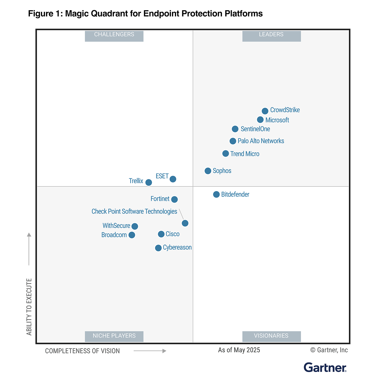 Gartner,《2025 Gartner® Magic Quadrant™ for Endpoint Protection Platforms (EPP)》,Evgeny Mirolyubov、Franz Hinner、Deepak Mishra,2025 年 7 月 14 日